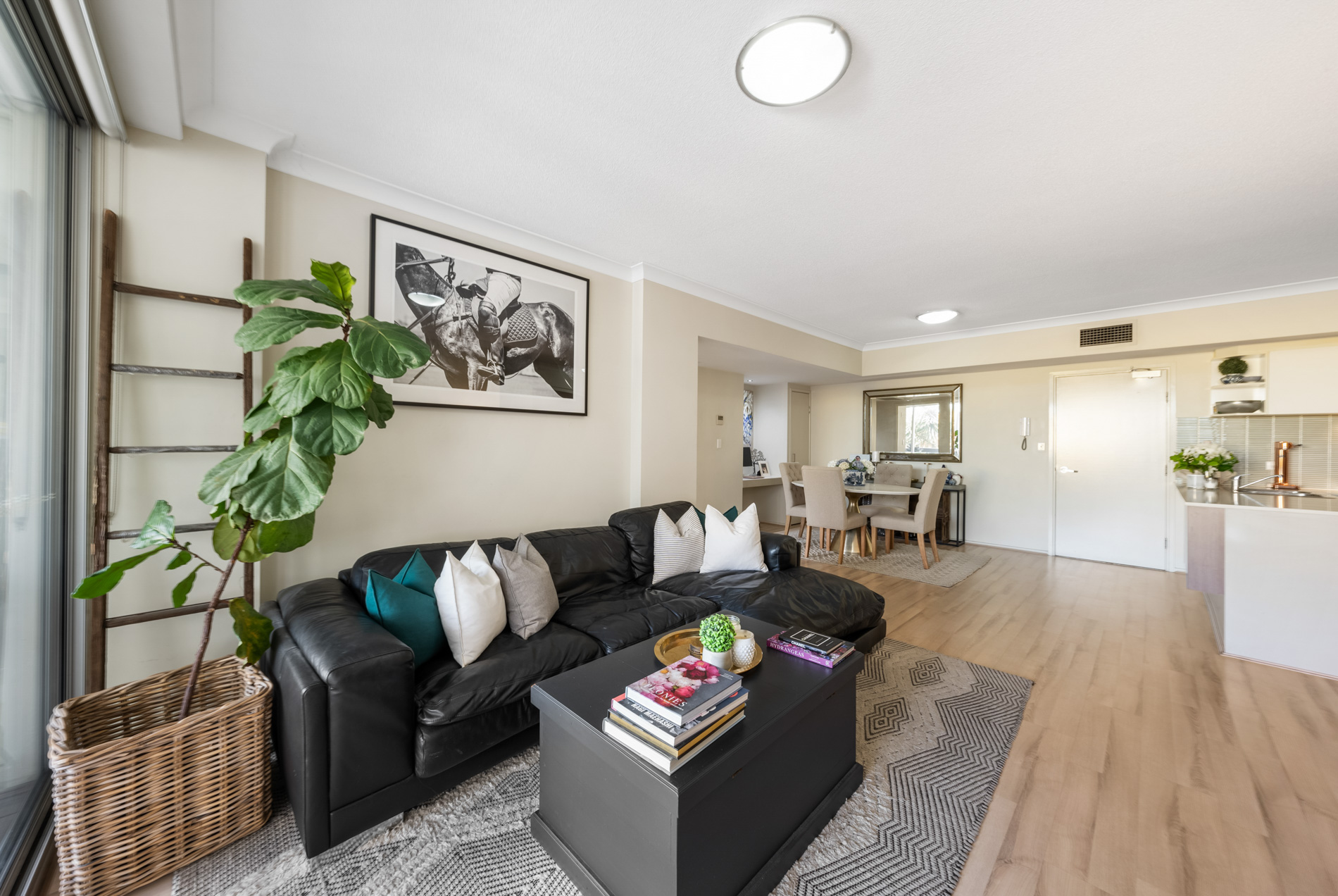 – Open plan living and dining areas
